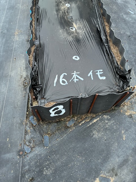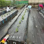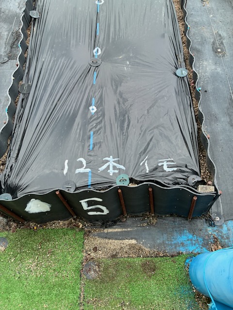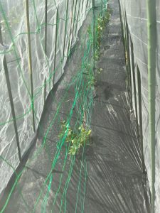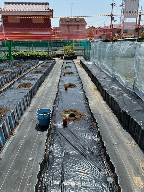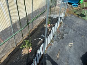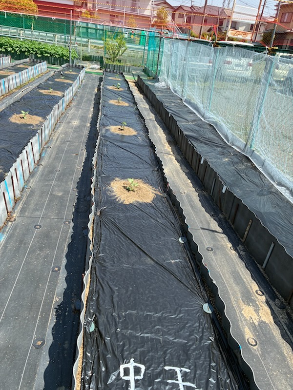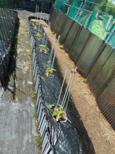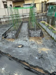 令和7年5月7日(水)(ゴ^-ヤ白2本、緑2本、まんが7本、ミニトマト2本、ナス4本、キュウリ3本)植える。