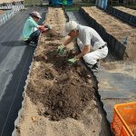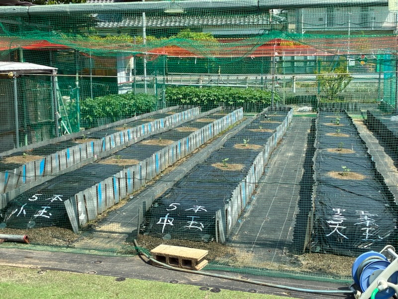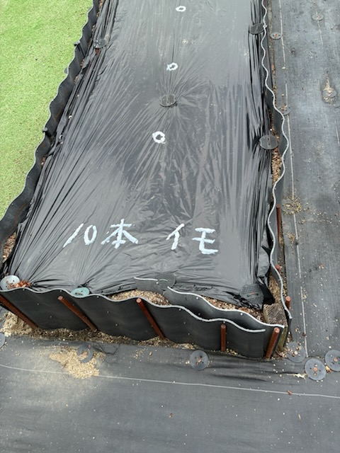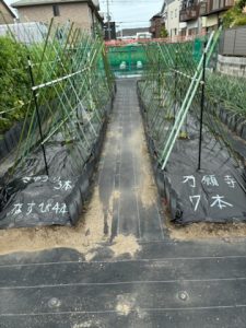 令和7年5月10日(土)ミニカボチャ4本、メロン2本、サツマイモ(鳴門金時)100本を植えました。