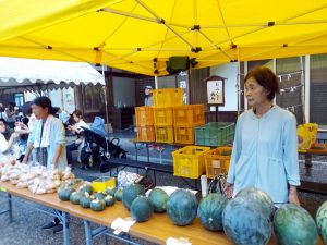 スイカ、なすび、ゴーヤ、玉ねぎ、ジャガイモ等の販売をしました。小玉スイカが若干残りましたが予定通りの夏野菜の販売がありました。