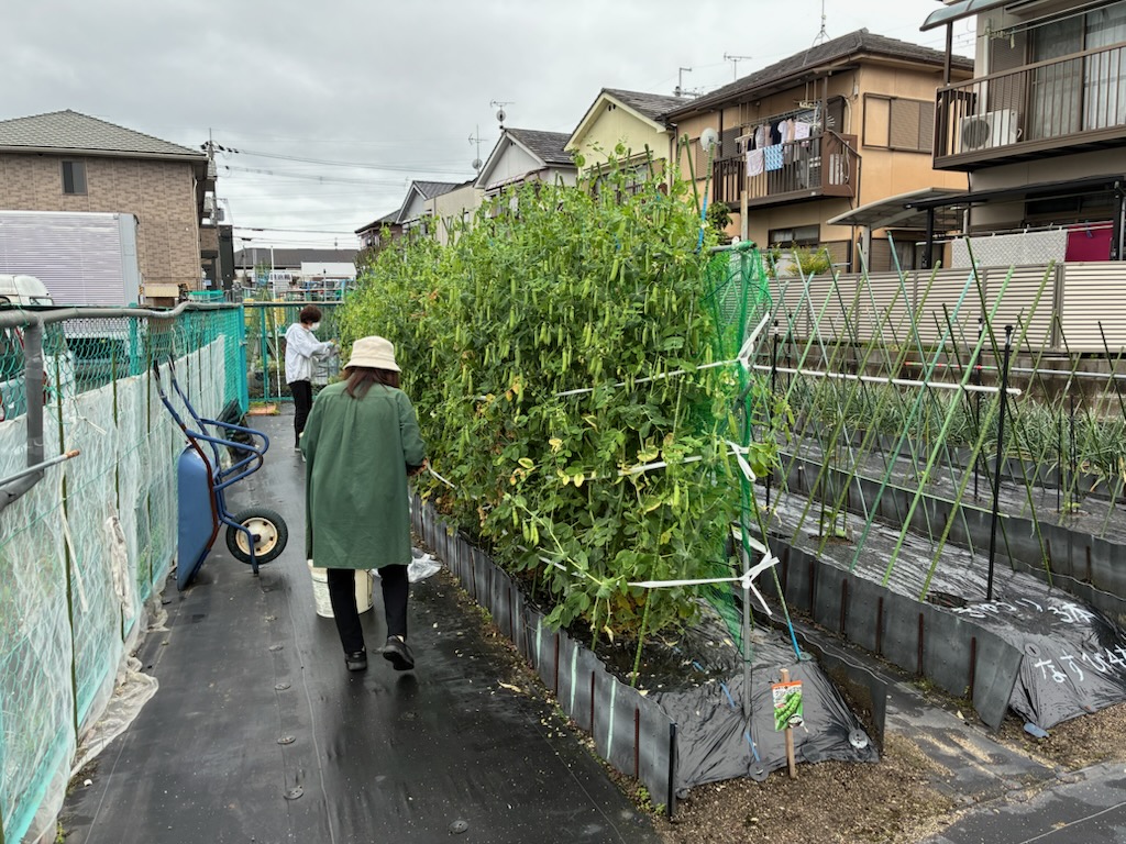 令和7年5月10日(土)グリーンピースの収穫をしました。