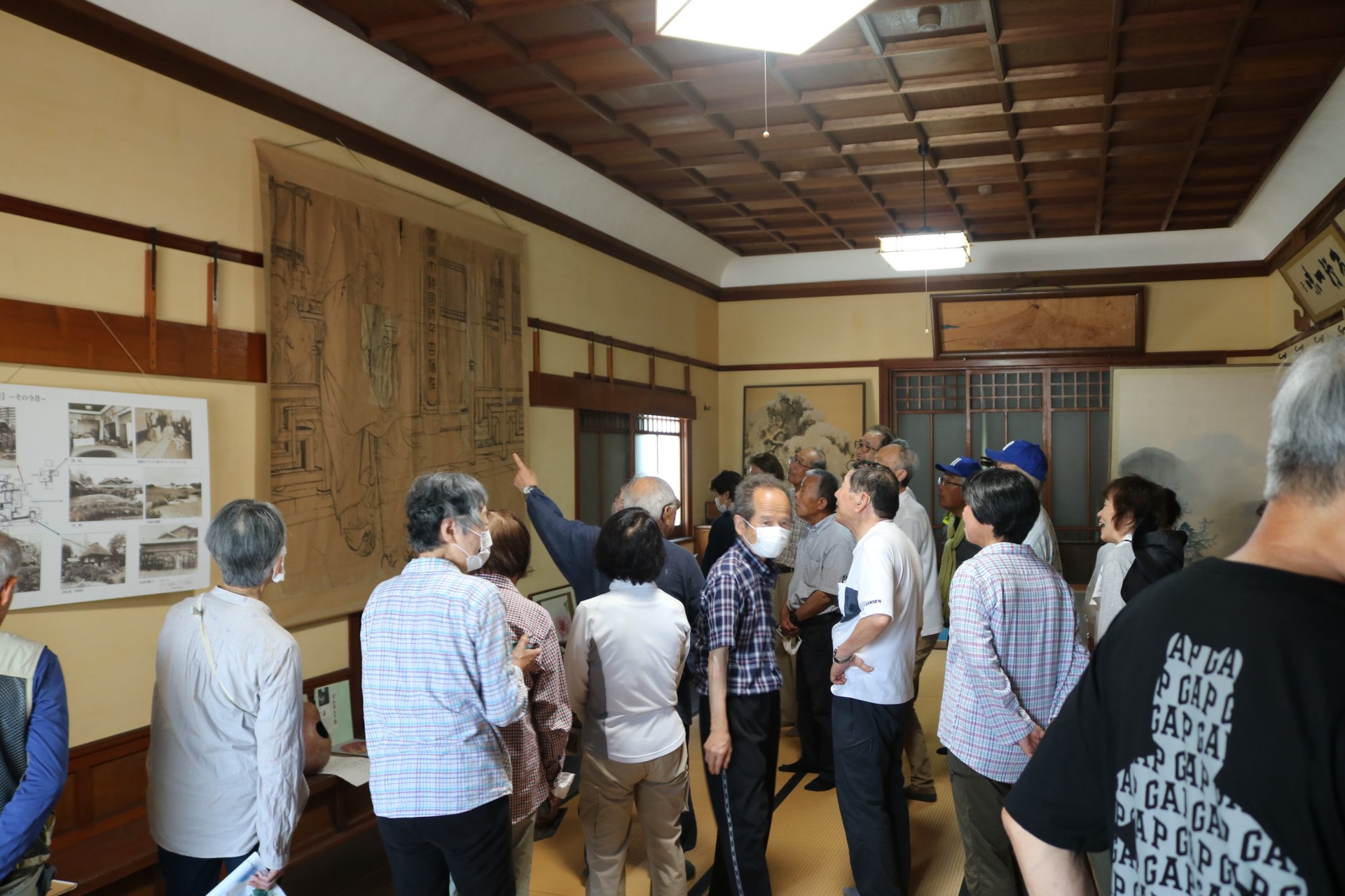 庭園は大津市指定文化財名勝になっており、場所を変えて集合写真を撮りました。
