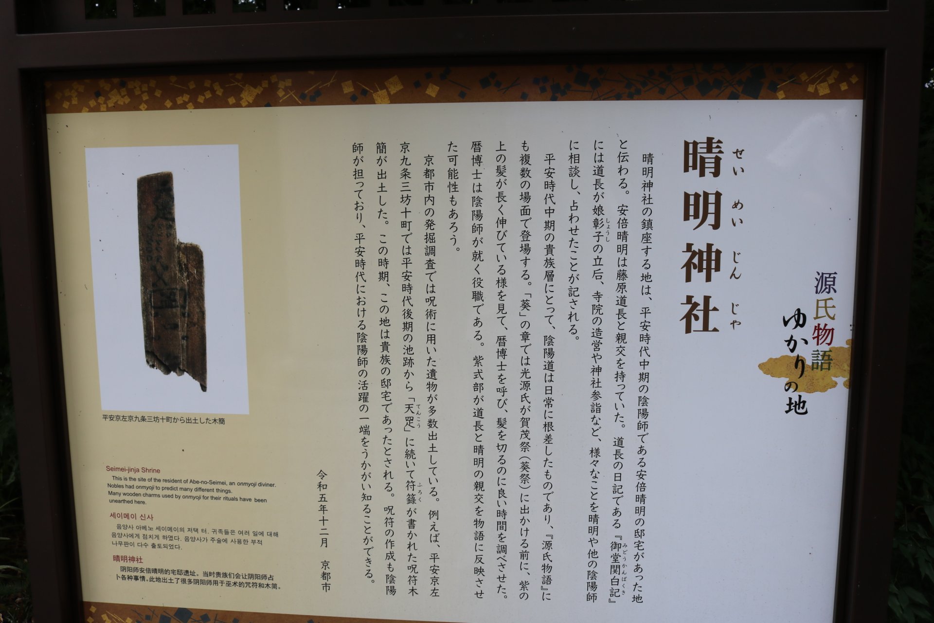 清明神社 大河ドラマ「光る君へ」では、「あべのせいめい」でなく「あべのはるあきら」呼ばれています。 |
